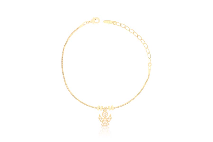 PULSEIRA BANHADA EM OURO, ELO RABO DE RATO 1,40mm, 17cm COMPRIMENTO, EXTENSOR 5cm E ANJO 13mm ALTURA