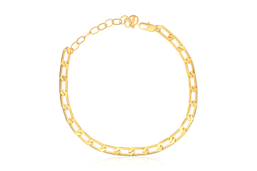 TORNOZELEIRA BANHADA EM OURO, CORRENTE ELO GRUMET ALONGADO 5,50mm LARGURA