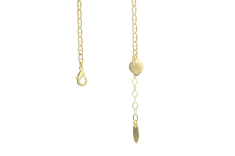 PULSEIRA BANHADA EM OURO, INFANTIL, ELO 2,40mm LARGURA, 13cm COMPRIMENTO E CORAÇÃO 7mm LARGURA