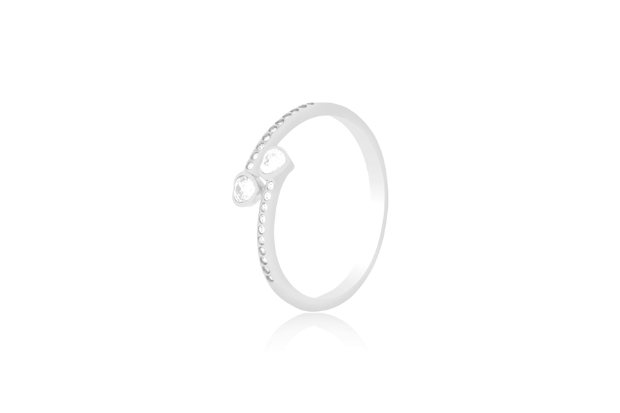 ANEL BANHADO EM RÓDIO BRANCO, COM 6 ZIRCÔNIAS