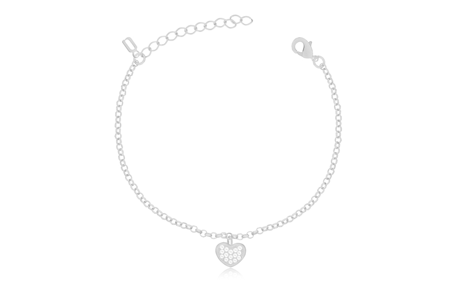 PULSEIRA BANHADA EM PRATA LEVE, ELO PORTUGUÊS 2mm, 16cm COMPRIMENTO, EXTENSOR 5cm E CORAÇÃO 10mm LARGURA
