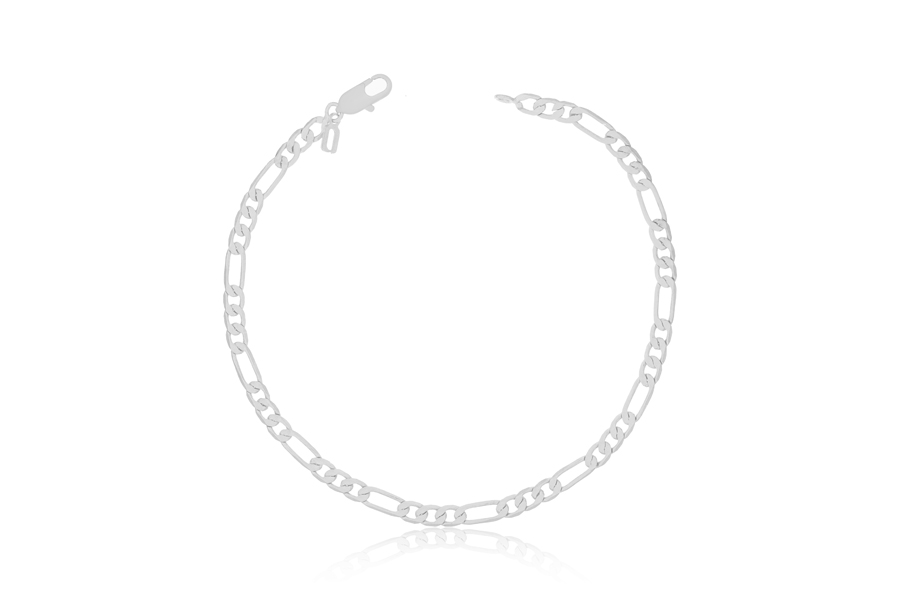 PULSEIRA BANHADA EM PRATA LEVE, CORRENTE ELO 3,60mm, 19cm, 20cm E 21cm COMPRIMENTO, SEM EXTENSOR E PESO 2,70g