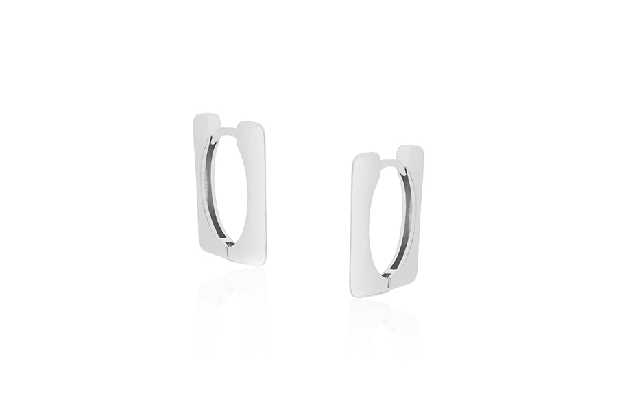 BRINCO BANHADO EM RÓDIO BRANCO, NAVETE 7,50mm COMPRIMENTO