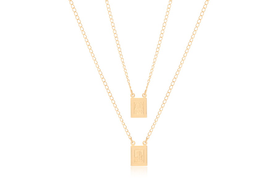 GARGANTILHA BANHADA EM OURO, RABO DE RATO 1,20mm, 40cm COMPRIMENTO E PINGENTE 14mm DIÂMETRO NOSSA SENHORA APARECIDA