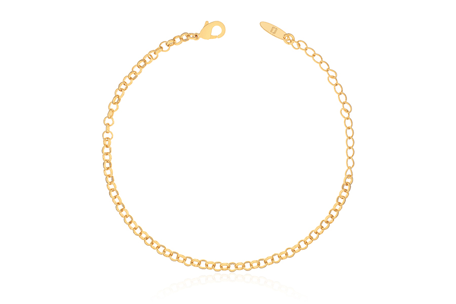 PULSEIRA BANHADA EM OURO, CORRENTE ELO PORTUGUÊS 3mm, 16cm E 17cm COMPRIMENTO, EXTENSOR 5cm E PESO 2,90g