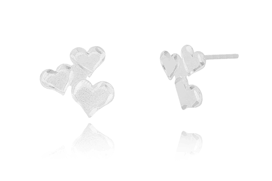 BRINCO EM PRATA, ARGOLINHA MEIA CRAVEJADA 12,50mm DIÂMETRO, COM CORAÇÃO LISO
