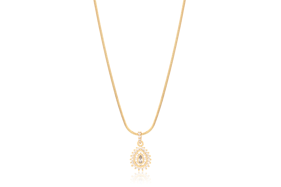GARGANTILHA BANHADA EM OURO, ELO RABO DE RATO FACETADO 1mm, 40cm COMPRIMENTO, EXTENSOR 10cm E PINGENTE GOTA 14x10mm