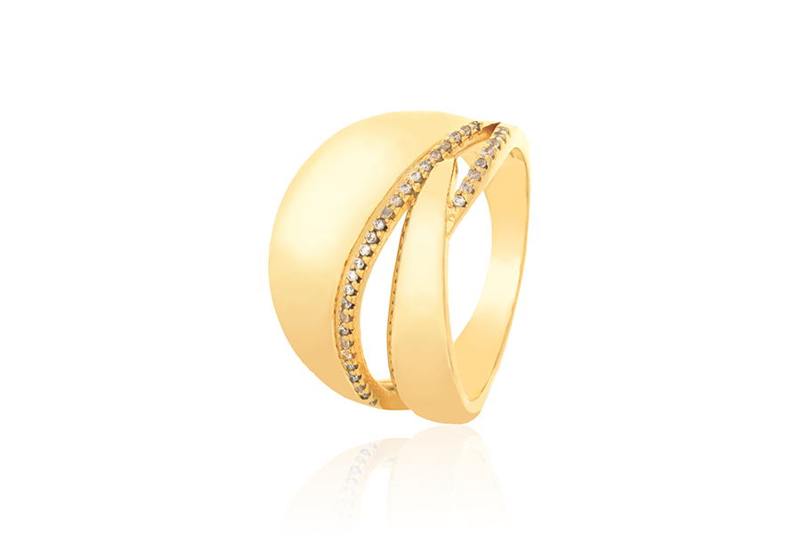 ANEL BANHADO EM OURO, COM ZIRCÔNIA